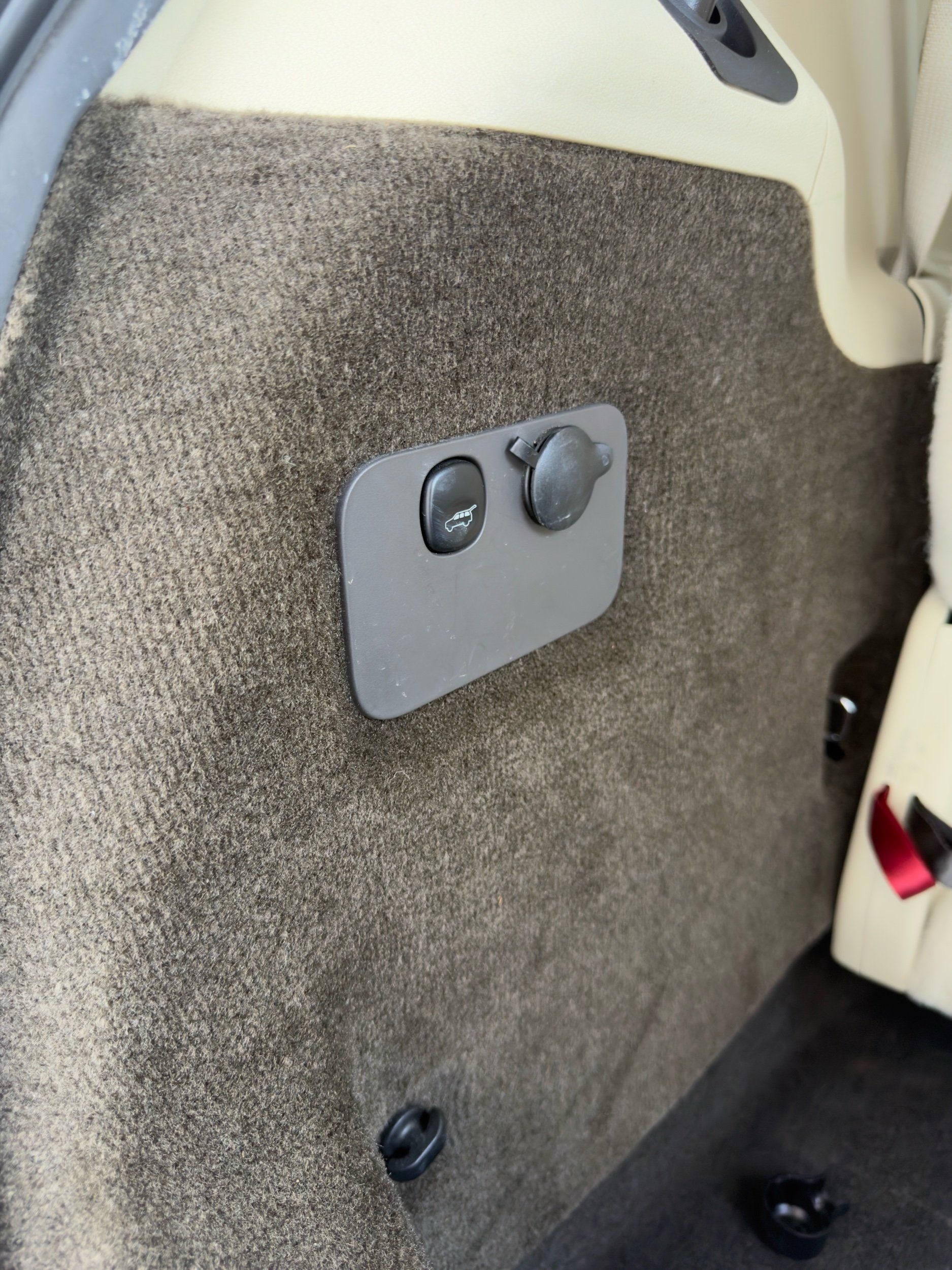 Third-row seatback upholstery: Carpet third-row seatback upholstery
